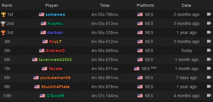 여기서 하나 알아둬야하는 개념이 The 21 frame rule인데, 스테이지 마지막에서는 매 프레임마다가 아니라 매 21프레임(시간으로 치면 0.35초)마다 스테이지 클리어를 체크한다는 것. (21프레임마다 버스가 도착한다고 생각하면 된다) 따라서 버스가 떠나는 타이밍 근처에서 조금만 시간을 단축시켜도 그 효과가 커지는데, 이 때문에 2011년쯤부턴 10픽셀 점프 2번으로 20픽셀을 이동시키는 방법론을 추구하게 됨. 이 과정에서 정체가 찾아오고 2016년부턴 TAS에서만 가능한 불가능에 가까운 기술(block clip, wall clip같이 아주 적재적소한 타이밍에 블록이나 벽에 끼어들어가는 기술)을 파고들기도 하지만 운에 빌어야할 정도로 어렵기 때문에 큰 성과가 나타나지는 못했다.