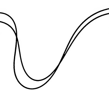 여기에서 조금 더 나아가, 앞바퀴자국과 뒷바퀴자국이 위 그림처럼 겹치지 않는 2개의 단순폐곡선을 이루는 경우를 보도록 한다. 뒷바퀴자국은 볼록이며 접선을 항상 그을 수 있다고 가정한다면, 두 바퀴 중심 사이의 거리를 이라고 할 때 두 곡선 사이의 넓이는