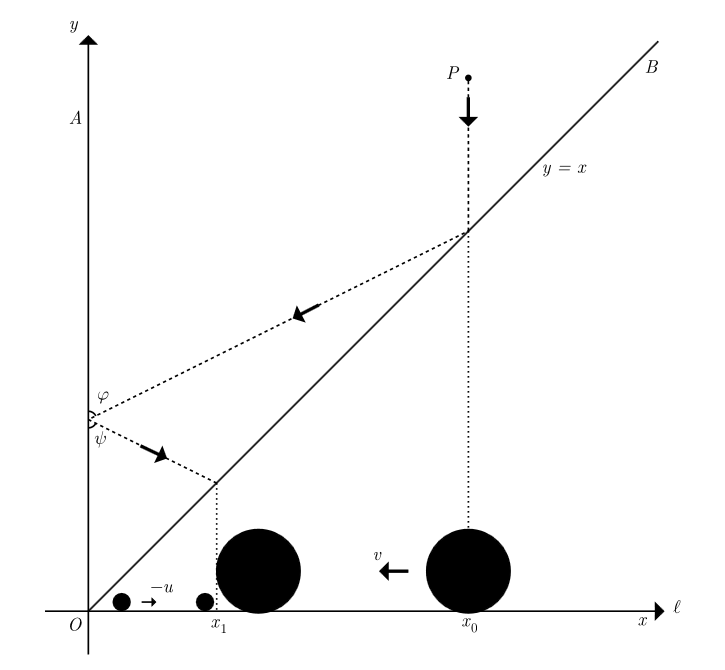 배 늘린 선형변환 후에는 angle 내에서 입사각=반사각을 따르는 반사 모델이 된다고 한다. 좀 계산 복잡한 증명이 될 것 같지만 모멘텀과 에너지가 유지된다는 조건을 벡터 방정식으로 생각하면 의외로 매우 간단하게 증명된다.