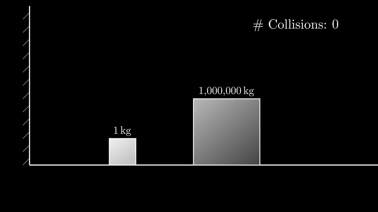위 그림처럼 완전 탄성 충돌과 마찰력이 없는 조건에서 1kg의 물체 A와 kg의 물체 B를 벽면, A, B의 순서가 되도록 나란히 놓은 뒤 선상에서 B를 움직여 A와 충돌시키고나면, 더 이상 충돌이 일어나지 않을 때까지의 충돌 횟수가 원주율의 첫 n+1 자리수가 된다는 것. (엄밀히는 1의 오차까지 있을 수도 있다) 위의 경우는 충돌 횟수가 3141회가 된다.