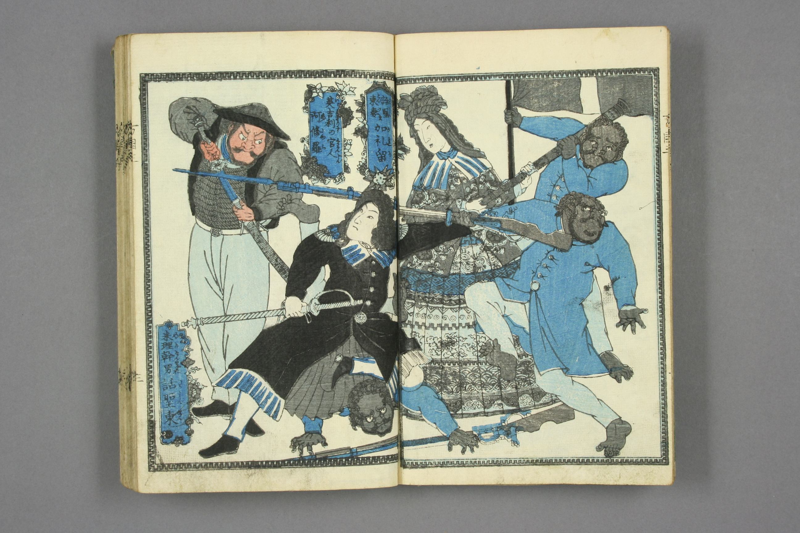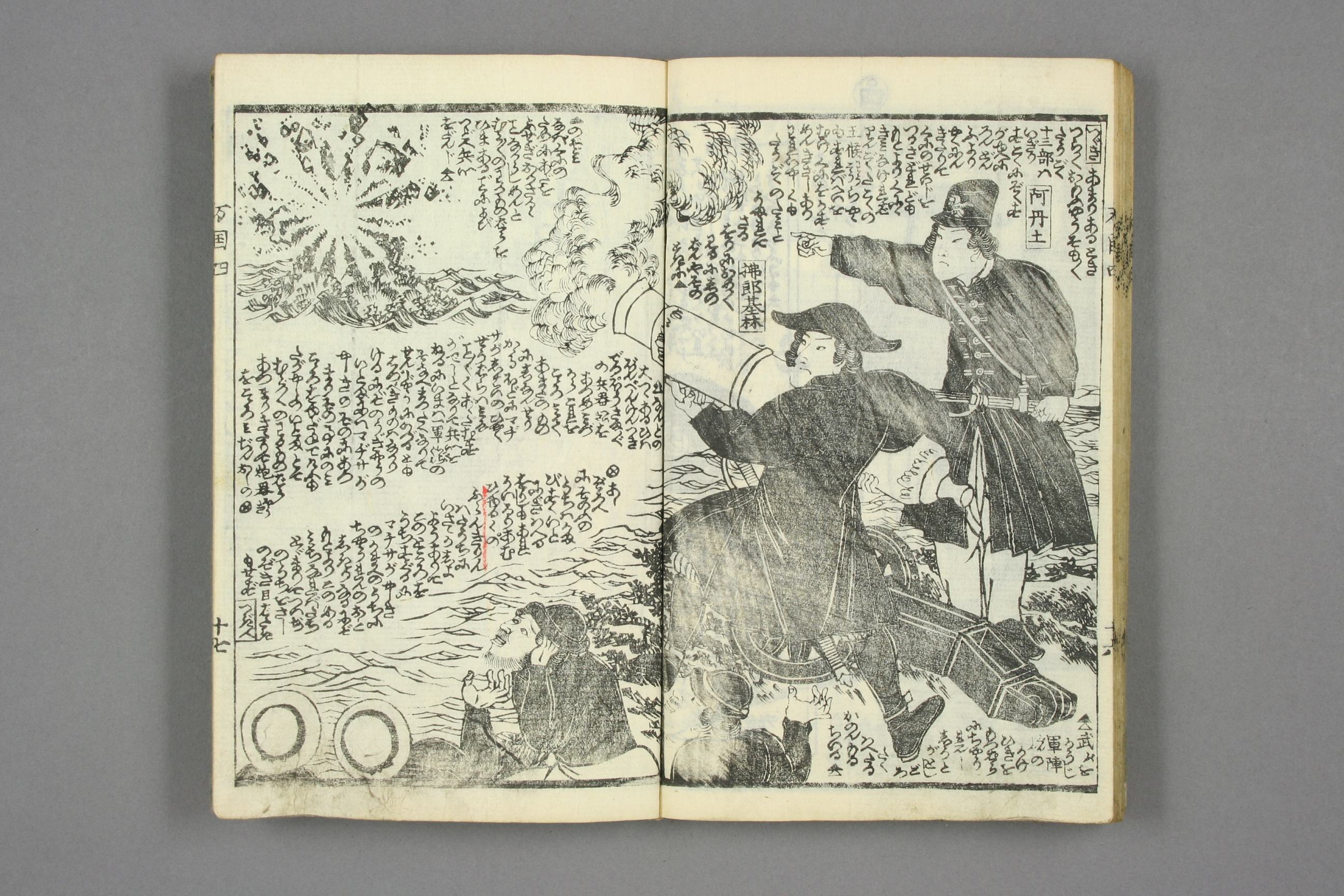 1861년 일본에서 발간된 오사나에토키 반코쿠바나시(童絵解万国噺)는 카나가키 로분(仮名垣魯文)이 글을 쓰고 우타가와 요시토라(歌川芳虎)가 그림을 그린 책으로, 일본풍으로 미국의 건국사를 그렸다. 현재 와세다 대학에서 그 스캔한 이미지를 제공하고 있다.