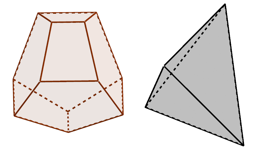만드는 방법은 아래 그림의 왼쪽 입체에서 오른쪽 사면체에 해당하는 부분을 제거하는 식이라고. 표면에 4개의 구멍이 생기며 genus는 3이 된다.