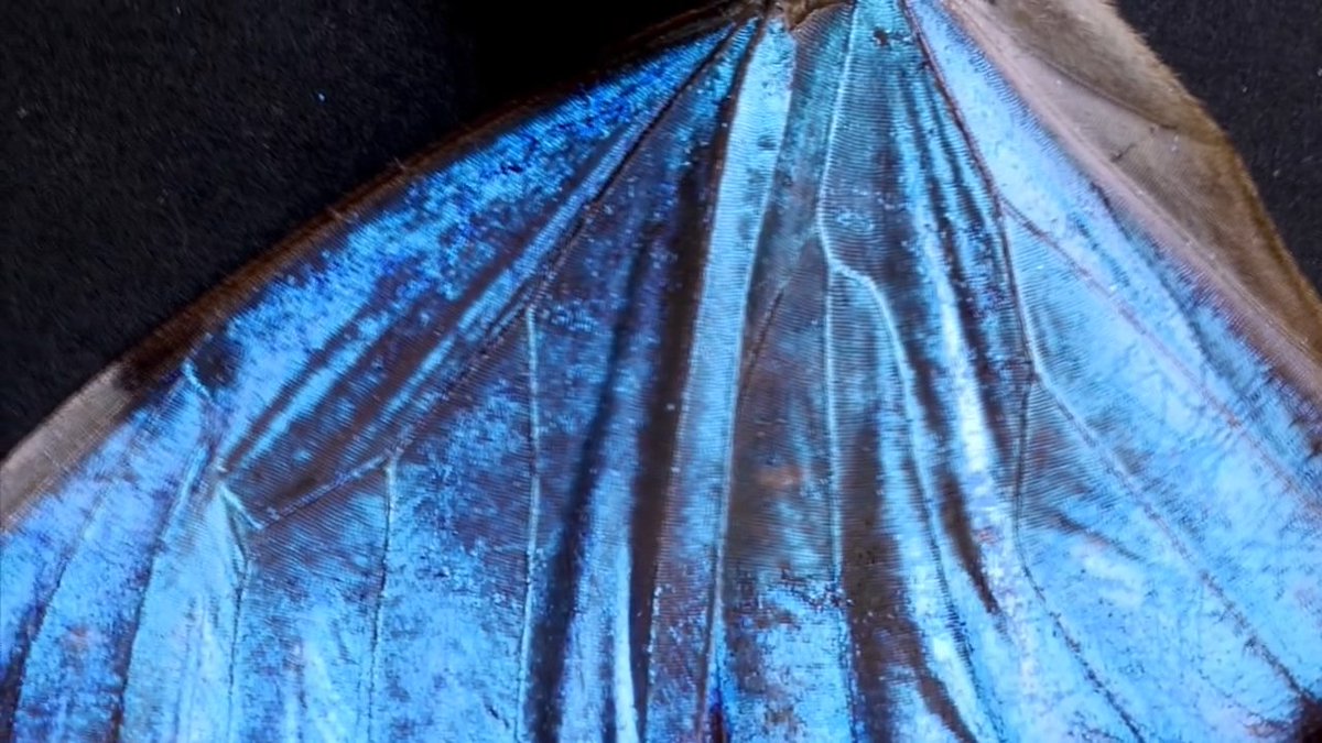 모르포 나비의 파란 색은 다른 나비같은 색소로 인한 색이 아니라, 표면에 위치한 매우 작은 스케일의 층층이 쌓인 듯한 구조로 인한 빛의 간섭과 산란에 의한 것이라고.