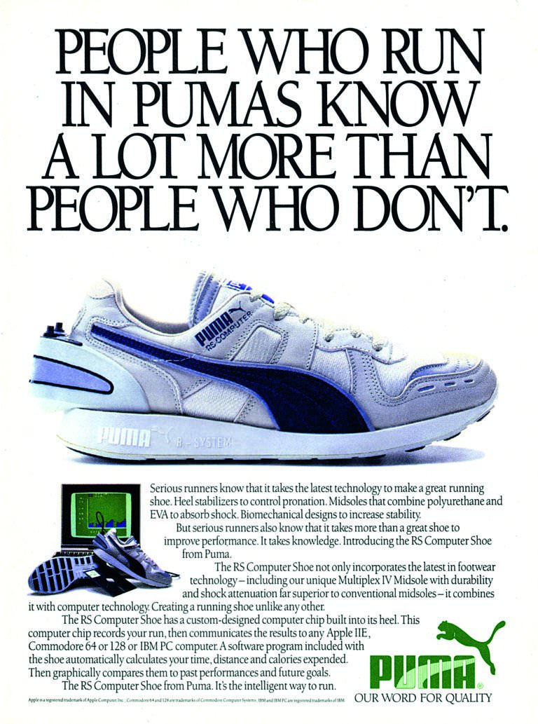 PUMA는 1986년 힐 부분에 마이크로프로세서를 넣어 주행 기록을 Apple IIE, IBM PC, 코모도어 64 등의 컴퓨터에 저장할 수 있게끔 하는 신발 RS Computer Shoe를 만든 적이 있다고 한다.