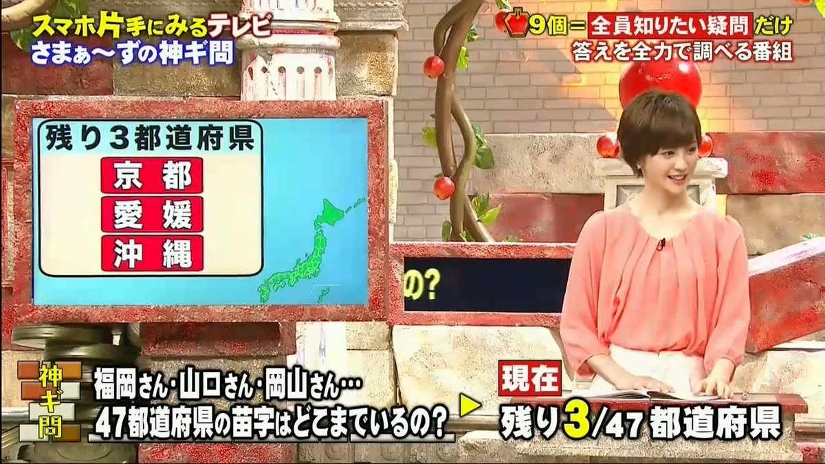 일본 버라이어티 쇼에서는 가끔 희귀한 성을 다루는 경우가 있는데, 한국과는 달리 각 성에 대한 데이터가 잘 갖추어지지 않은 듯하다. さまぁ~ずの神ギ問에서는 47개의 도도부현을 성으로 갖는 사람들을 한 명씩 전부 직접 만나서 확인하는 코너를 진행한 적이 있는데, 딱히 방도가 없어 페이스북 뒤지고 예전 전화번호부 뒤지고 직접 수소문하는 등 일일이 찾는 모습을 보여주기도 했다. 결국 교토, 에히메, 오키나와 세 곳을 제외하고는 전부 만나는데는 성공함.