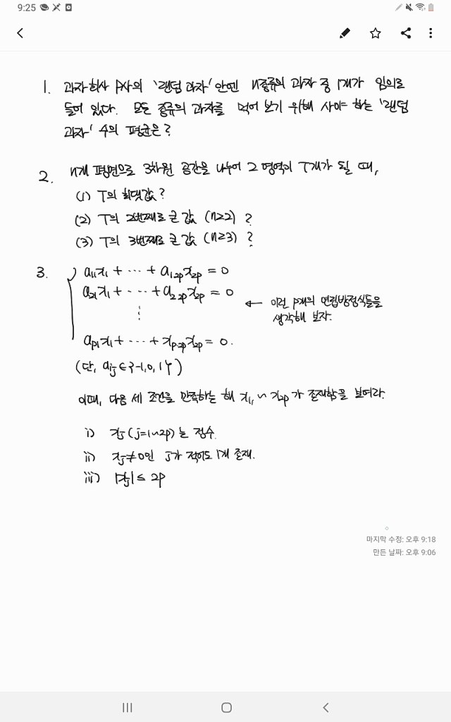 6번은 Generalized Fisher’s inequality로 알려진 문제이다. 1940년 Ronald Fisher가 제안한 문제로 design theory의 fundamental result 중 하나. 이에 대해선 다음과 같은 깔끔한 증명이 있다. 의