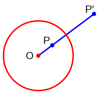 의 반전이라 하고, 도형이 주어져 있으면 도형을 이루는 점의 반전 이미지들로 이뤄지는 도형을 그 도형의 반전으로 부를 수 있다. 편의상 원점인